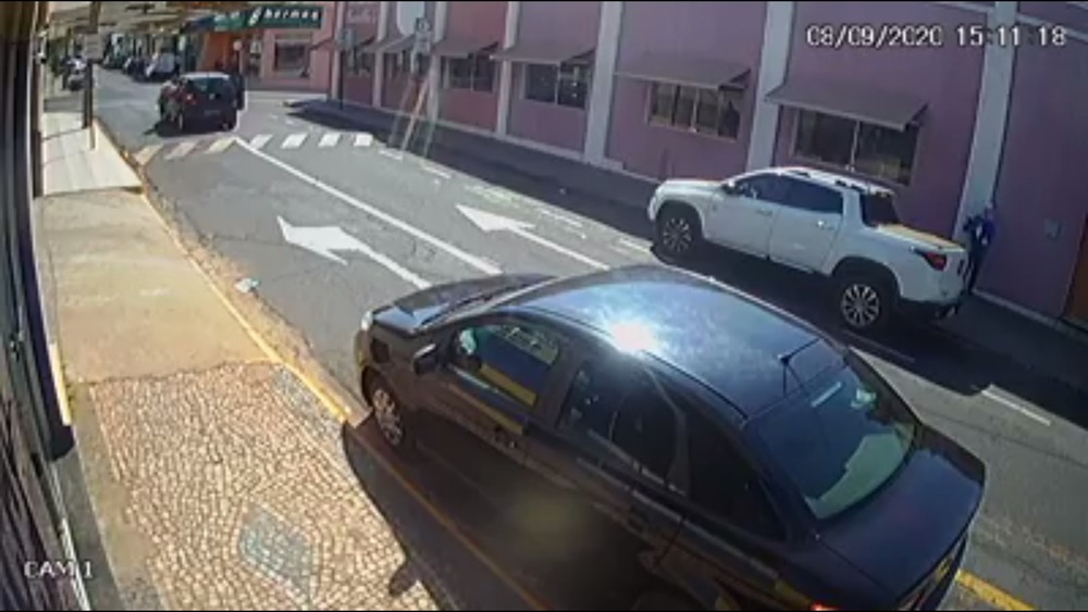 Criminoso abordou vítima que dirigia um carro em Votuporanga — Foto: Reprodução/Câmera de segurança