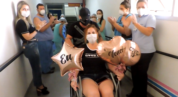 No último sábado, 05, a médica Jaqueline Bartira Brasil, integrante do corpo clínico da Santa Casa de Misericórdia de Jales, recebeu alta após 23 dias de internação, sendo oito dias na UTI de Síndromes Gripais. Ao deixar o hospital, registrou o momento com balões com as palavras “Eu venci a Covid-19” e em fotos com os colaboradores da instituição. A médica emocionou a todos, sobretudo quando foi aplaudida de pé e recebeu votos de boa saúde.