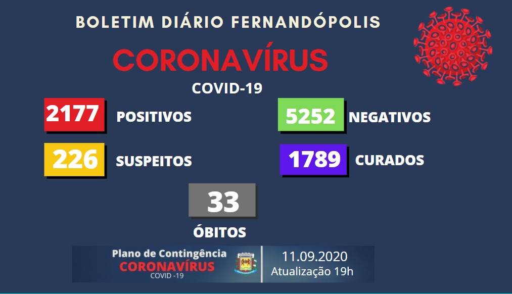 Fernandópolis contabilizou nesta sexta-feira, 10, oito testes positivos para coronavírus. O município tem agora 2.177 infectados por Covid-19.