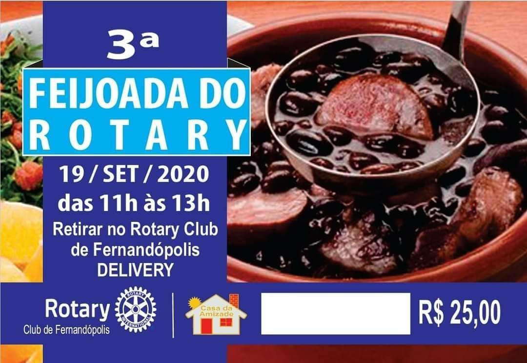 O Rotary Club de Fernandópolis realizará nesse sábado, 19 de setembro, das 11 da manhã ás 13 horas a 3º Feijoada do Rotary. Os convites estão disponíveis para venda com os integrantes do clube e custam R$ 25,00 reais.