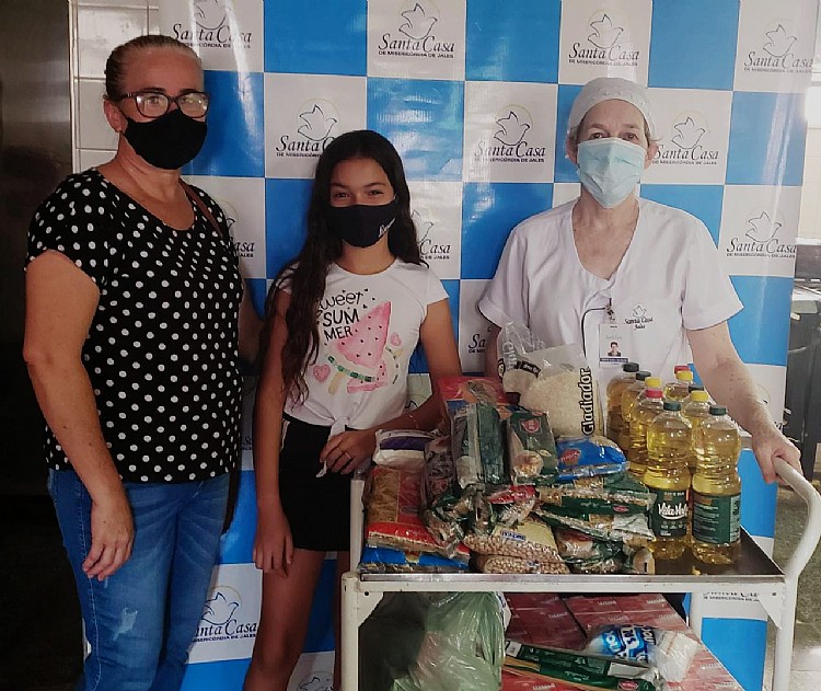 Na segunda-feira, 14, a Santa Casa de Misericórdia de Jales recebeu a senhora Roseli Socorro Alves, com a sua neta Lorena da Costa Ribeiro de 9 anos, a pequena organizou uma campanha em sua cidade Dirce Reis que arrecadou alimentos para a campanha “Alimento Solidário” da Santa Casa de Misericórdia de Jales.