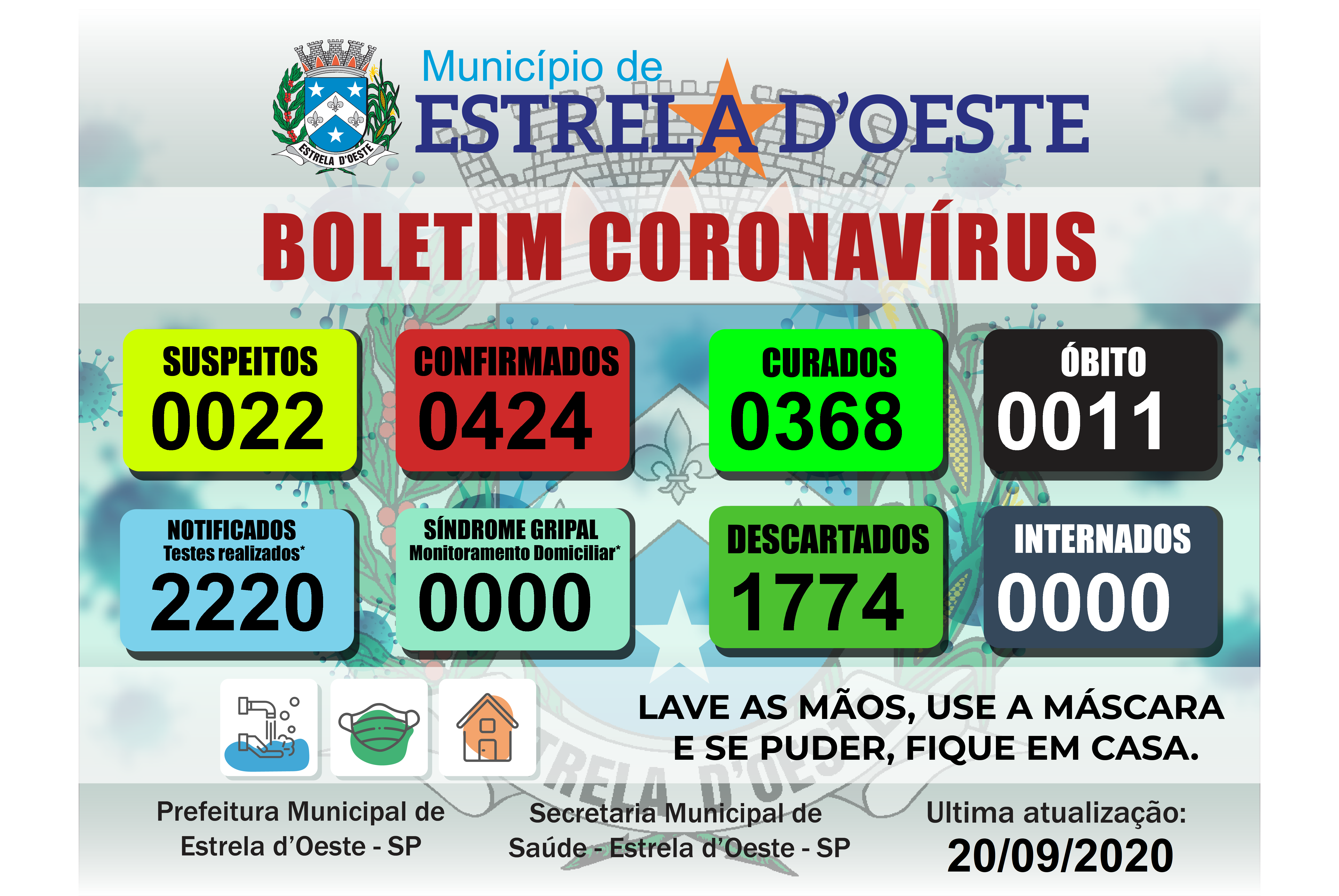 Estrela d´Oeste, município localizado a 17 quilômetros de Fernandópolis, registrou mais casos positivos de coronavírus (Covid-19), neste domingo, dia 20, de acordo com o boletim epidemiológico, divulgado pela Prefeitura.