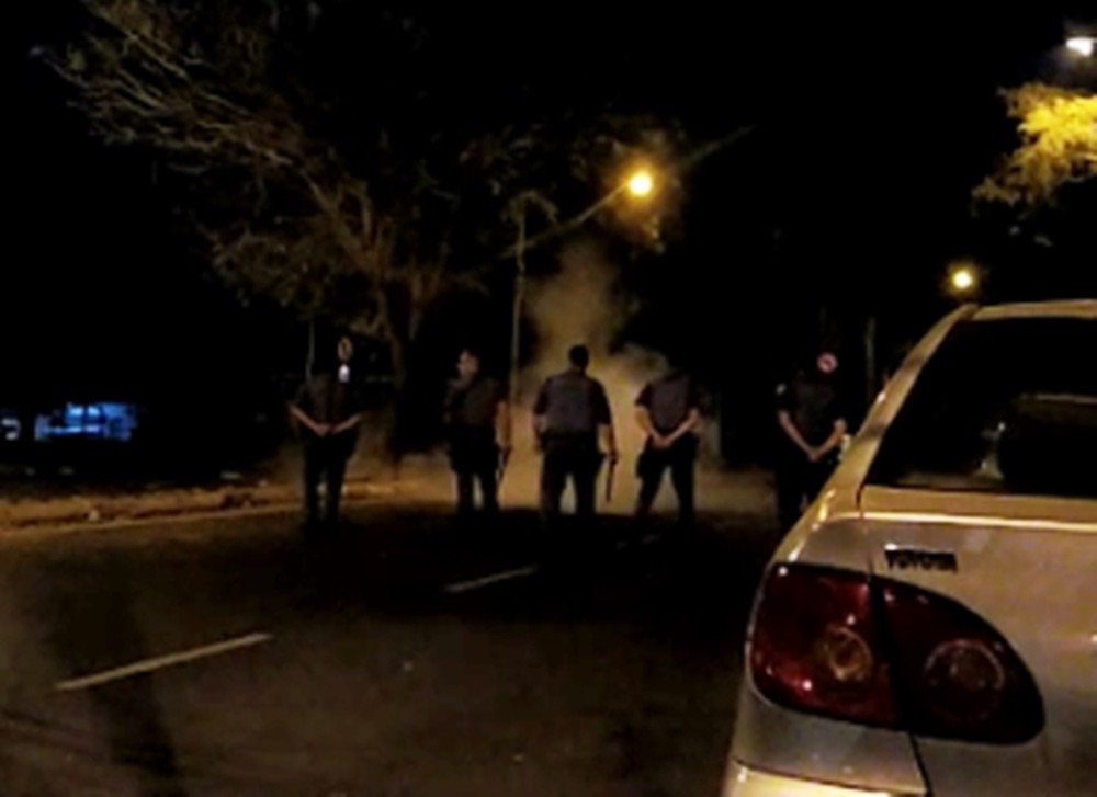 Equipes da polícia foram para o local e constataram a aglomeração, por volta das 2h. A polícia usou as bombas para dispersar o grupo e liberar o trânsito na rua. De acordo com a PM, ninguém se feriu.