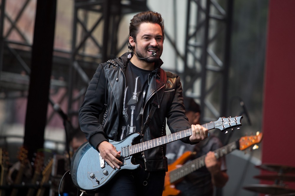 O cantor Fernando, da dupla sertaneja Fernando & Sorocaba, durante apresentação — Foto: Marcelo Brandt/G1