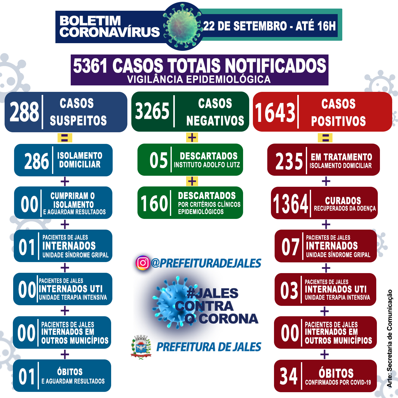 A Secretaria Municipal de Saúde de Jales registrou nas últiams 24 horas, 43 notificações suspeitas para a Covid-19.