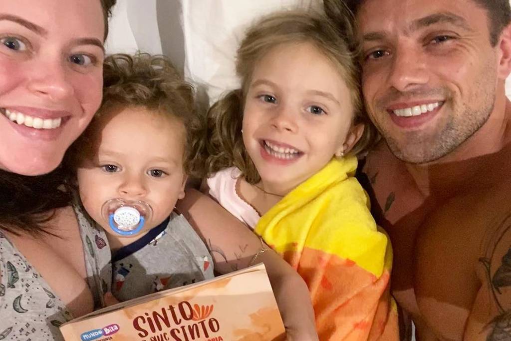 Rafael Cardoso com a esposa, Mari Bridi, e os filhos Aurora e Valentim - Foto: Reprodução/Instagram