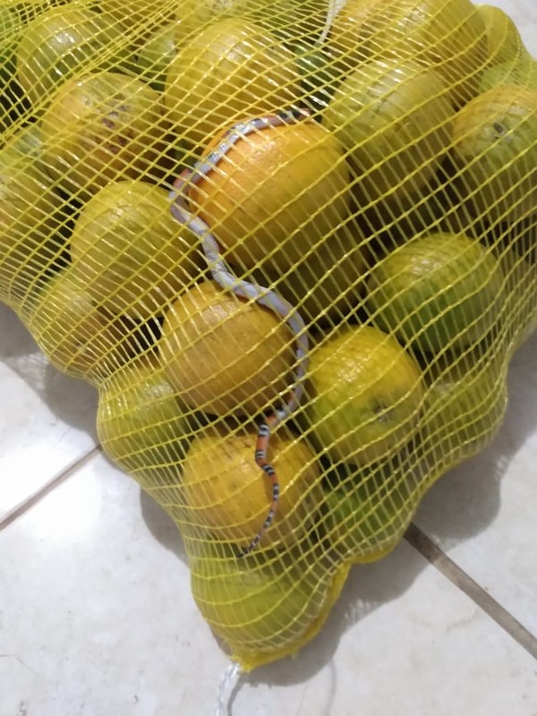 Uma mulher levou um susto ao encontrar uma cobra coral dentro de um saco de de laranjas comprado em uma rede atacadista em Mogi das Cruzes. De acordo com Lorene Lourenço, ela só percebeu a presença no animal em meio as frutas quando chegou em casa.