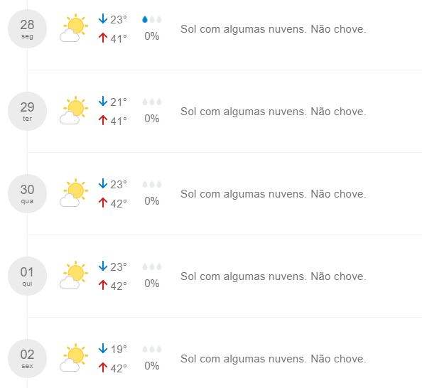 A semana promete ser de muito calor em Fernandópolis, seguindo as já altas temperaturas enfrentadas durante o final de semana, o calor promete não dar trégua e deve seguir ao longo dos próximos dias. As informações são do site Clima Tempo.