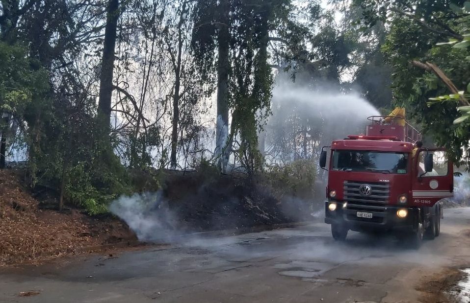 "Três caminhões do Corpo de Bombeiros foram usados. Além do reforço de um caminhão do Semae e um da Defesa Civil, que também ajudaram na ocorrência. Neste momento, o fogo foi controlado. Estamos fazendo apenas o trabalho de rescaldo", afirmou Vitor Fogolin Silva, Tenente do Corpo de Bombeiros.