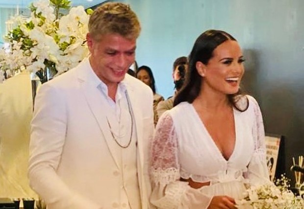 Desde o começo da relação, há poucos meses, o casal se mantinha bem discreto sobre o romance. A cerimônia ocorreu apenas no civil. Os familiares presentes realizaram teste de Covid-19.