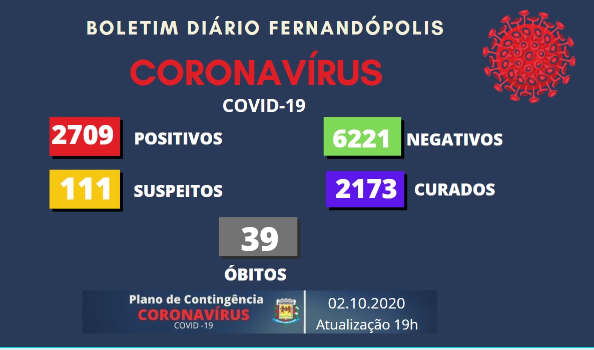 Fernandópolis contabilizou nesta sexta-feira, 2, mais 30 testes positivos para coronavírus. O município tem agora com 2.679 infectados pela doença.