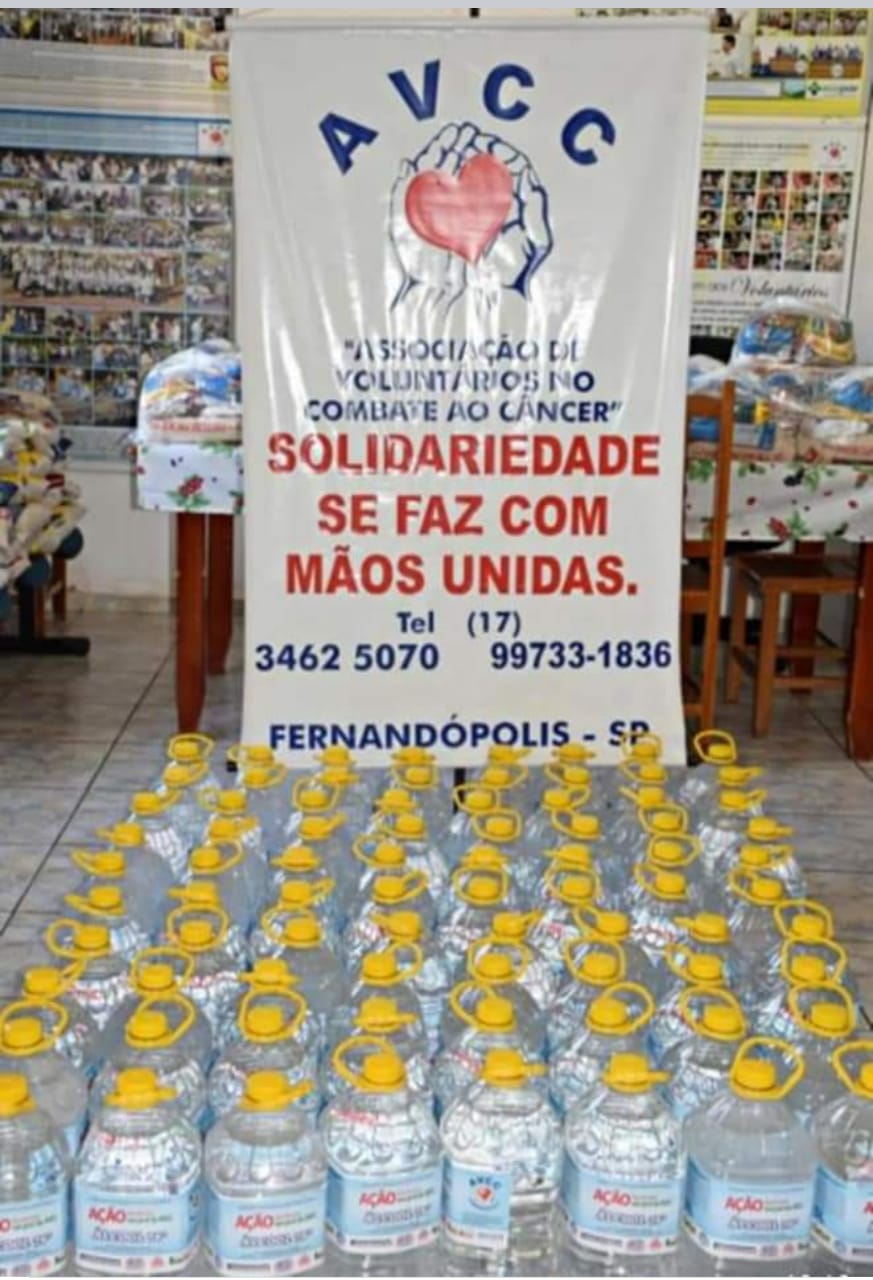 A ação promovida e coordenada pelo Grupo Arakaki, com a participação da Alcoeste, Papelaria Bom Jesus, Climacell, Transnossa Ascont Sistemas & Web, FEF Fundação Educacional de Fernandópolis dentre outras, resultou, novamente, na doação de 500 litros de Álcool 70% para a Avcc.