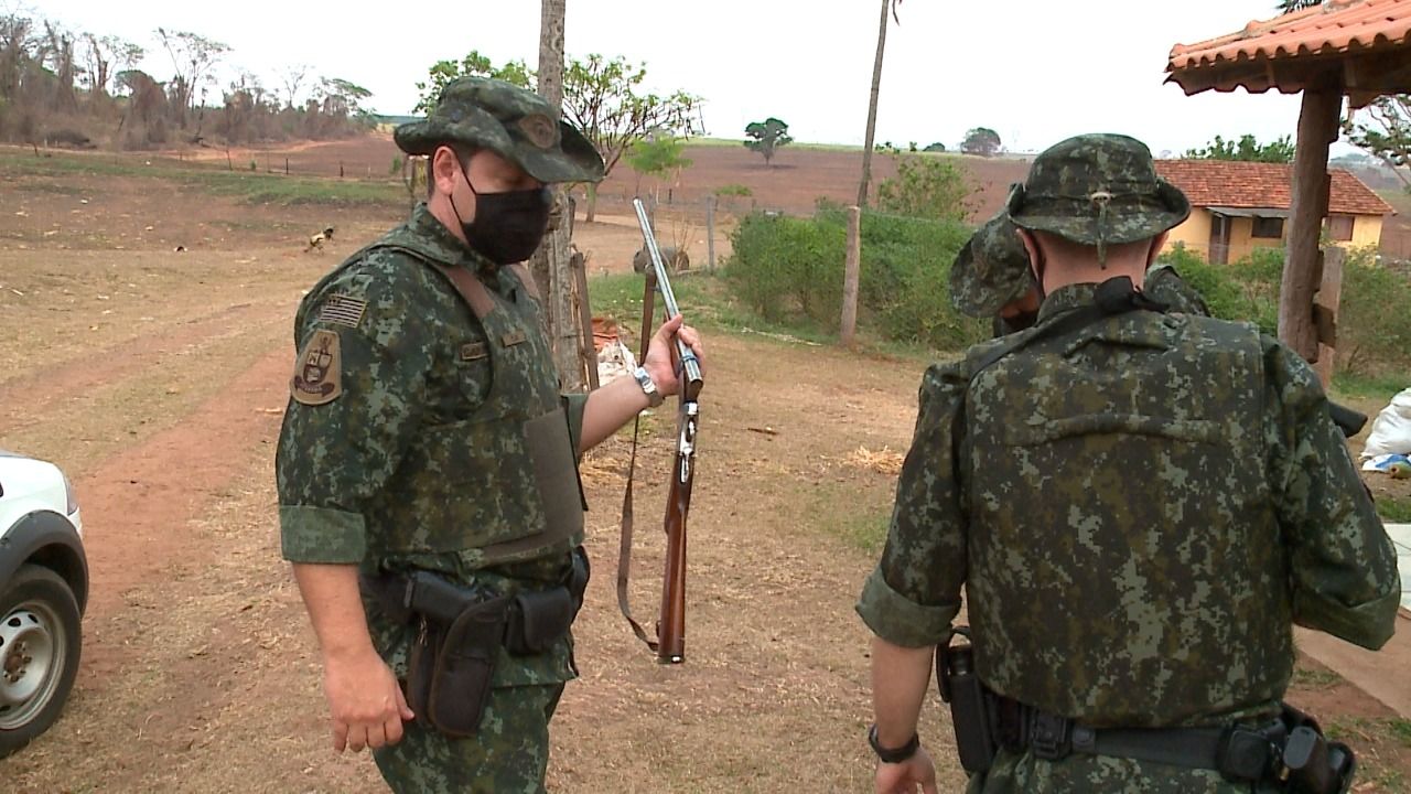 Em uma propriedade rural, em Nova Granada, foram apreendidos uma espingarda, espoleta, chumbinho, pólvora e cartuchos. O responsável poderá responder por posse ilegal de arma de fogo de calibre permitido.