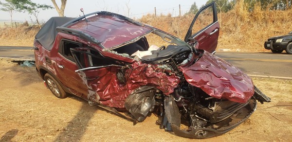 A motorista dirigia uma Fiat/Toro, e bateu de frente com uma Toyota/Hilux ao tentar fazer uma ultrapassagem.