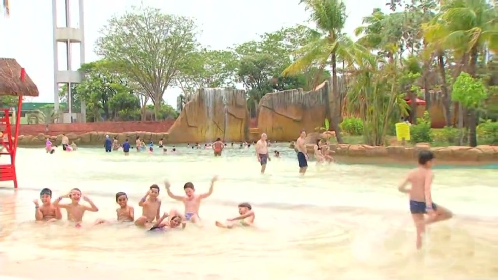 Parque aquático de Olímpia neste sábado (10) foi aberto — Foto: Reprodução/TV TEM