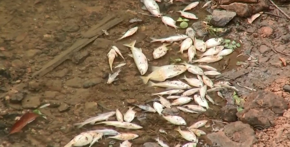 Peixes morreram por baixo oxigênio na água - Foto: Reprodução/TV TEM