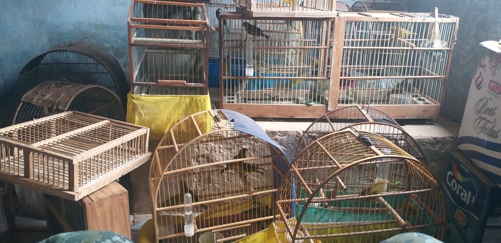 As aves, inclusive algumas ameaçadas de extinção, foram encontradas em gaiolas e viveiros. Os policiais também apreenderam equipamentos usados para capturar os animais.