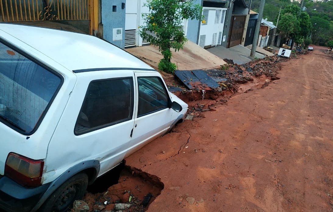As fotos foram encaminhadas para a reportagem do FocoNews junto com um desabafo de um morador: "Não tem como sair de casa! O meu carro ficou preso na garagem e olha o que aconteceu com o carro do vizinho. Eu e minha esposa tivemos que ir trabalhar com veículo de aplicativo. Sei que o bairro segue em obras, mas toda vez que chove é este transtorno", disse.