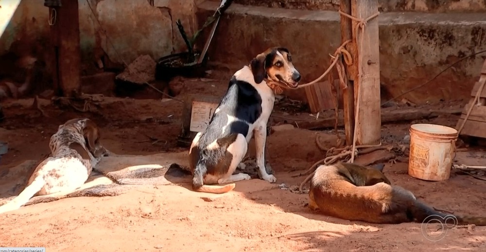 Cães estavam amarrados em casa em Rio Preto - Foto: Reprodução/TV TEM