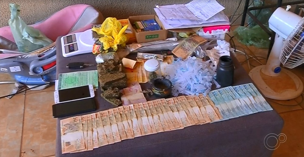 Foram encontrados também maconha, balanças de precisão e dinheiro