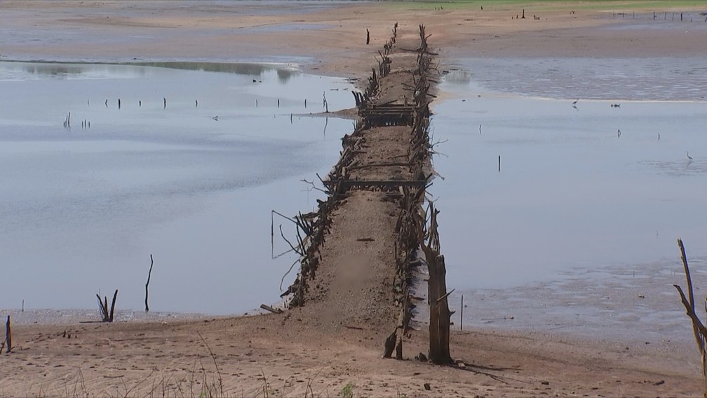 Seca faz nível de rio baixar e revela ponte 'escondida' há mais de 40 anos na região