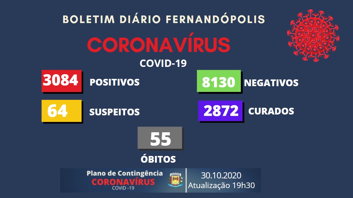 Fernandópolis registrou nesta sexta-feira, 30, mais cinco testes positivos para coronavírus. O município soma 3.084 infectados pela doença.