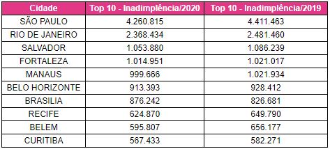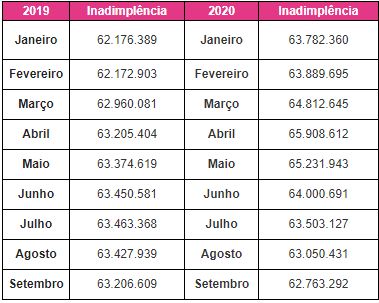 Em setembro, a capital paulista conta com mais de 4.2 milhões inadimplentes, 3% a menos do que o mesmo período no ano passado, quando registrou 4.4 milhões. Já em todo o Estado de São Paulo, a inadimplência chega a 15 milhões. Um levantamento realizado pela própria Serasa mostra os impactos na taxa de inadimplência no Brasil em 2020 em comparação com o ano passado: