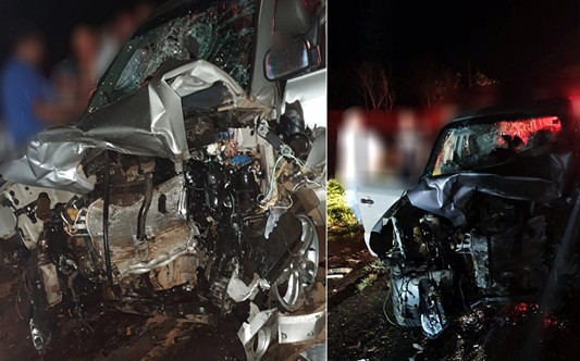 Uma colisão frontal registrada na noite de sexta-feira, 06, entre dois veículos deixou quatro pessoas feridas - três gravemente.