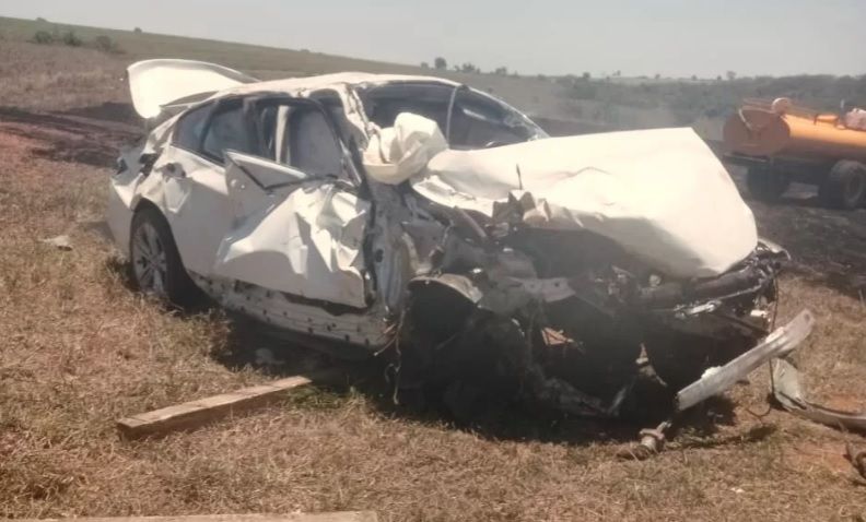 Impacto fez com que o motor do veículo fosse arremessado e pegasse fogo; filho presenciou o acidente