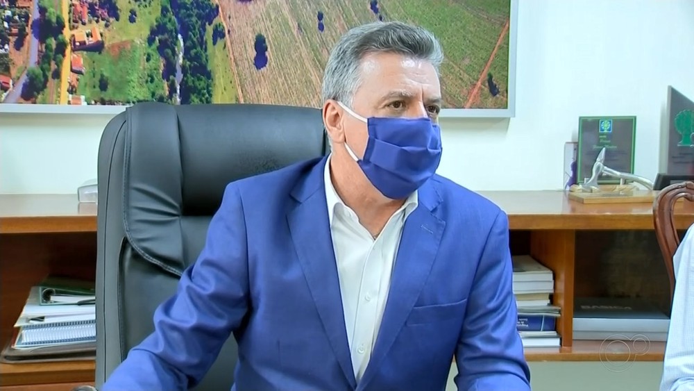 Prefeito de Penápolis, Célio de Oliveira, durante entrevista coletiva - Foto: Reprodução/TV TEM