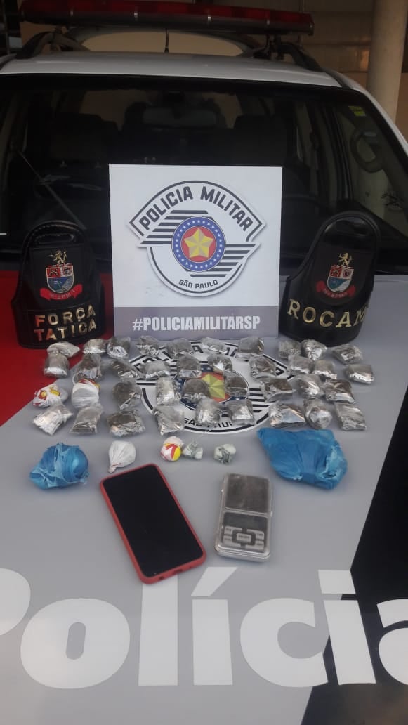 Diante dos fatos, e localização de drogas e de objetos utilizados no tráfico de drogas, J.A. foi preso. Foram apreendidos durante a ocorrência 1 balança digital, 1 aparelho celular, 39 porções de maconha com peso total de 0,540kg e 5 porções de cocaína com peso 0,080 Kg.