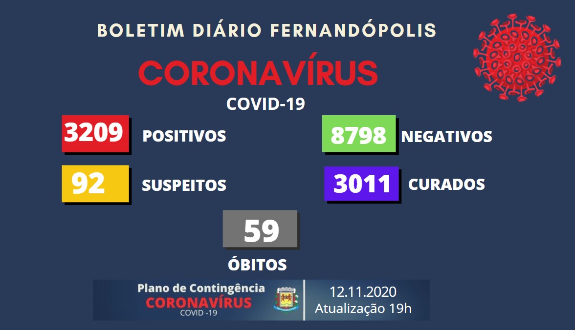 Fernandópolis registrou nesta quinta-feira, 12, mais 23 testes positivos para coronavírus. O município soma 3.206 infectados pela doença.