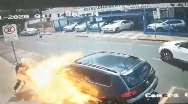 Uma câmera de segurança registrou o momento em que um homem ateou fogo em um carro estacionado na rua Lafayete Spinola de Castro, no bairro Boa Vista, em São José do Rio Preto, na tarde desta quinta-feira, 12.
