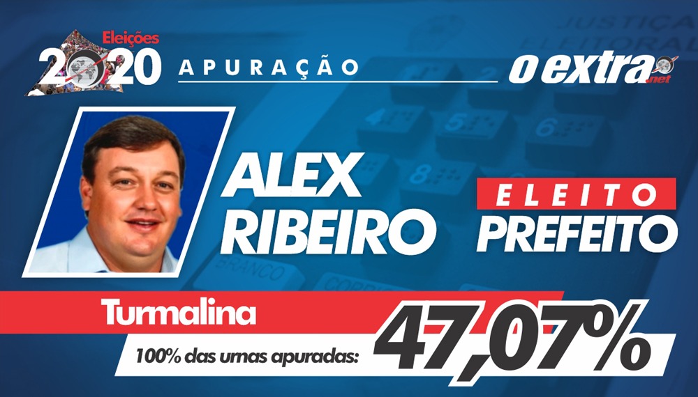 O candidato Alex Ribeiro (MDB) foi reeleito prefeito de Turmalina neste domingo, 15. Alex teve 730 votos, o que corresponde a 47,07 % dos votos válidos. Maninho (PTB), teve 545 votos (35,14%) e Calixto (DEM) teve 276 votos (17,79%).