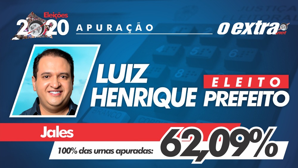 Luis Henrique, do PSDB, foi eleito, neste domingo (15), prefeito de Jales (SP) para os próximos quatro anos. Ao fim da apuração, Luis Henrique teve 62,09% dos votos. Foram 12.114 votos no total.