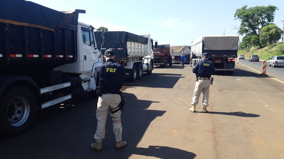 De acordo com a polícia, os três caminhões e três carretas foram flagrados transportando 53 toneladas em excesso de peso, além de não ter a documentação ambiental devida.