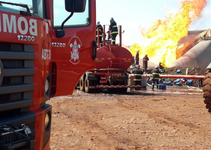 Bombeiros tentam controlar as chamas após explosão de tanque de etanol - Foto: Reprodução