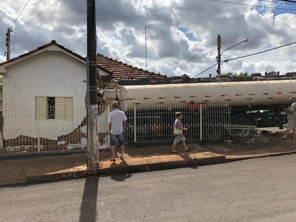 Ainda segundo a Polícia Militar, a traseira do caminhão-tanque bateu no portão e invadiu parte do imóvel.