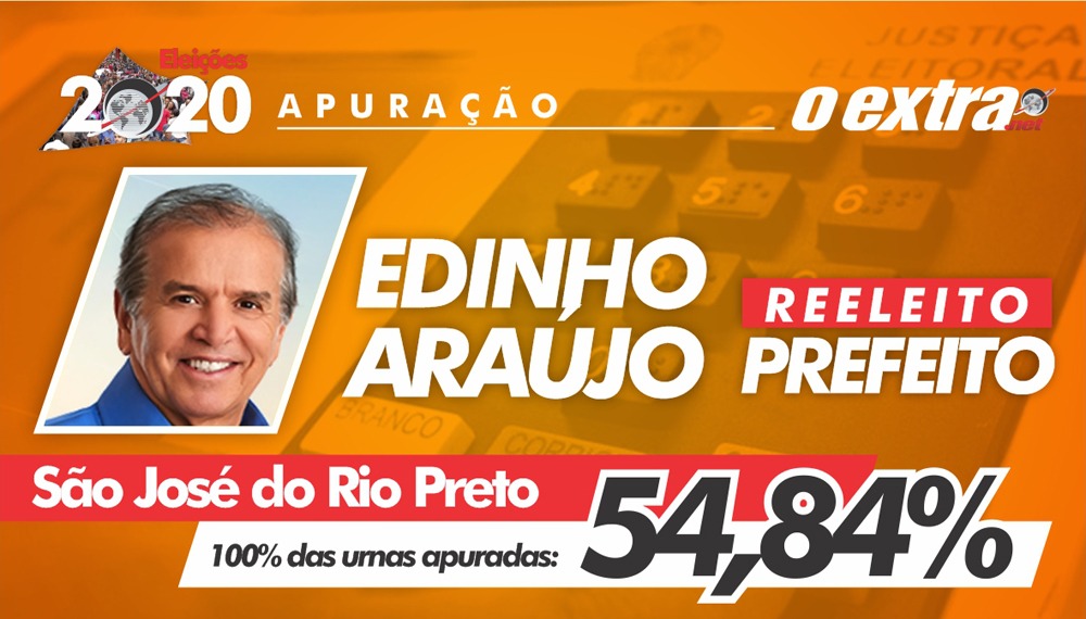 Edinho Araújo, do MDB, foi eleito, no domingo (15), prefeito de São José do Rio Preto para os próximos quatro anos. Ao fim da apuração, Edinho teve 54,84% dos votos. Foram 111.525 votos no total.