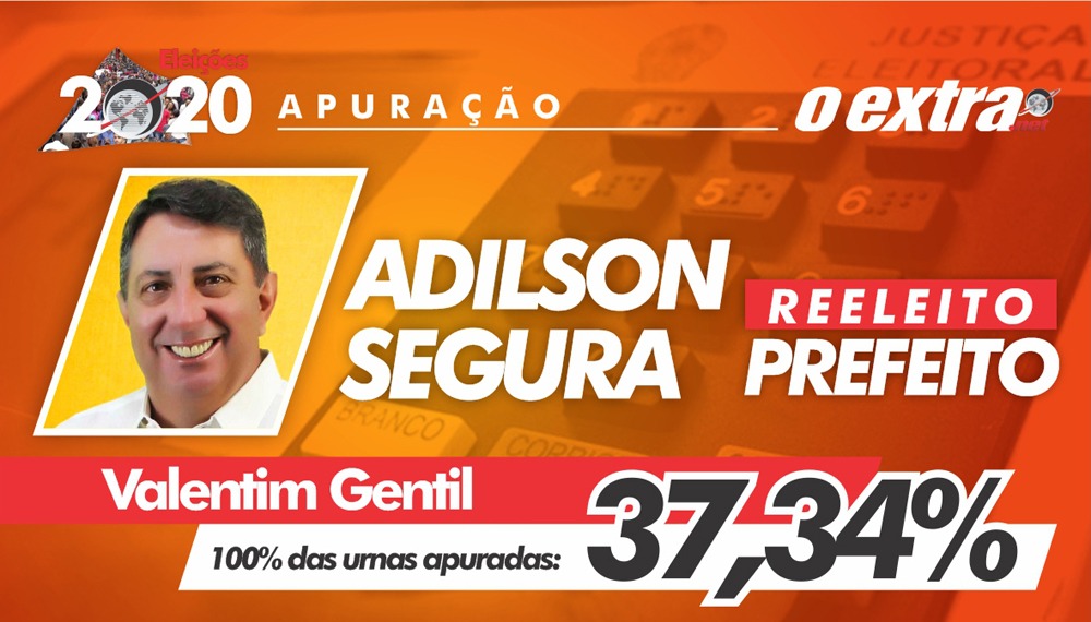 O atual prefeito Adílson Segura (PSDB) – e o vice Manezinho -, continuará no comando de Valentim Gentil pelos próximos quatro anos. Numa disputa com outros quatro adversários, Segura teve 2.625 votos, o que corresponde a 37,34% dos votos válidos, e foi eleito neste domingo, 15.