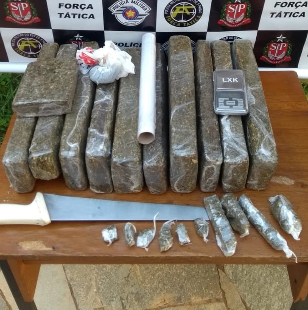 Além da droga, polícia também encontrou uma balança de precisão e uma faca com resquícios da droga