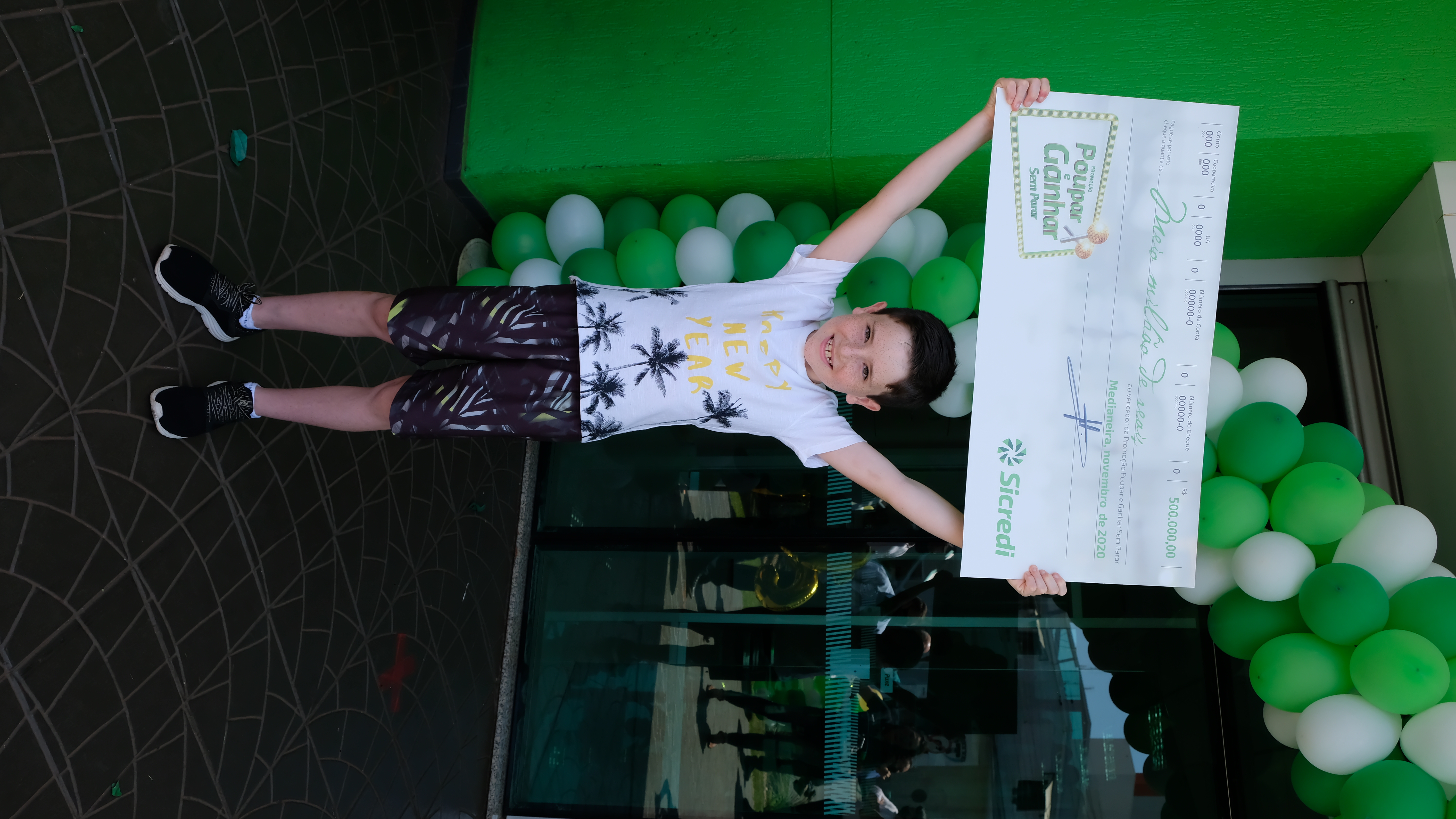 O jovem associado Vinicius Poli começou cedo a poupar. Com apenas nove anos de idade, o morador de Medianeira (PR), foi o grande vencedor do sorteio especial da campanha, realizado em outubro como celebração ao Dia Mundial da Poupança. Ao receber o cheque de R$ 500 mil, o associado celebrou a prática de fazer uma reserva financeira: "Eu gosto de poupar, porque no Sicredi eu ganhei quinhentos mil reais poupando!", comemorou. O hábito de poupar é quase uma tradição na família de Vinícius. O pai, a mãe e os dois irmãos têm poupança no Sicredi.