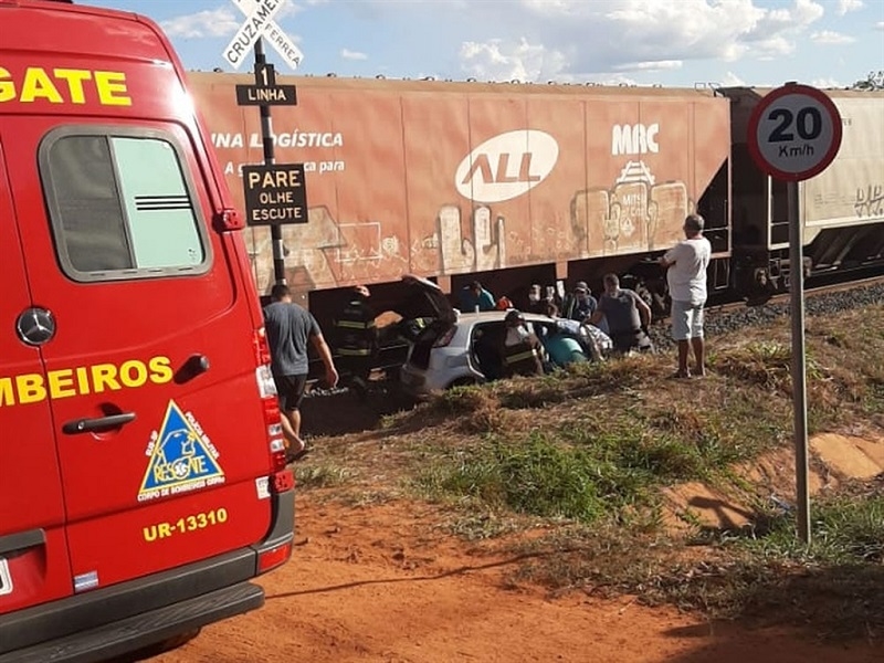 O carro em que eles estavam foi atingido pela locomotiva em um cruzamento de nível, perto de Valentim Gentil. As vítimas foram resgatadas pelo Bombeiros.
