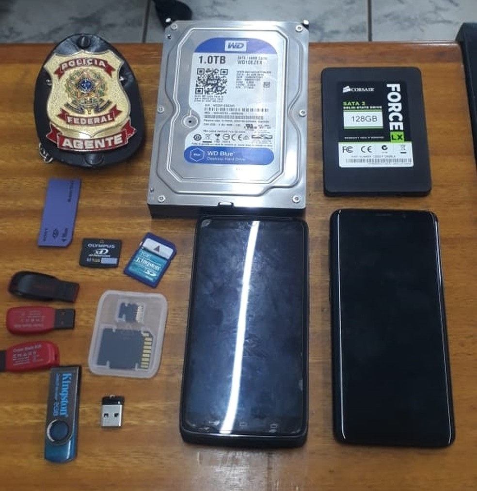 Material apreendido pela Polícia Federal contra a pornografia infantil em Rio Preto - Foto: Divulgação/PF