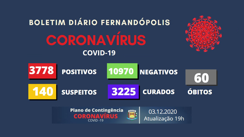 Fernandópolis registrou nesta quinta-feira, 03, mais 28 novos casos de coronavírus. O município soma agora 3.778 infectados pela doença.
