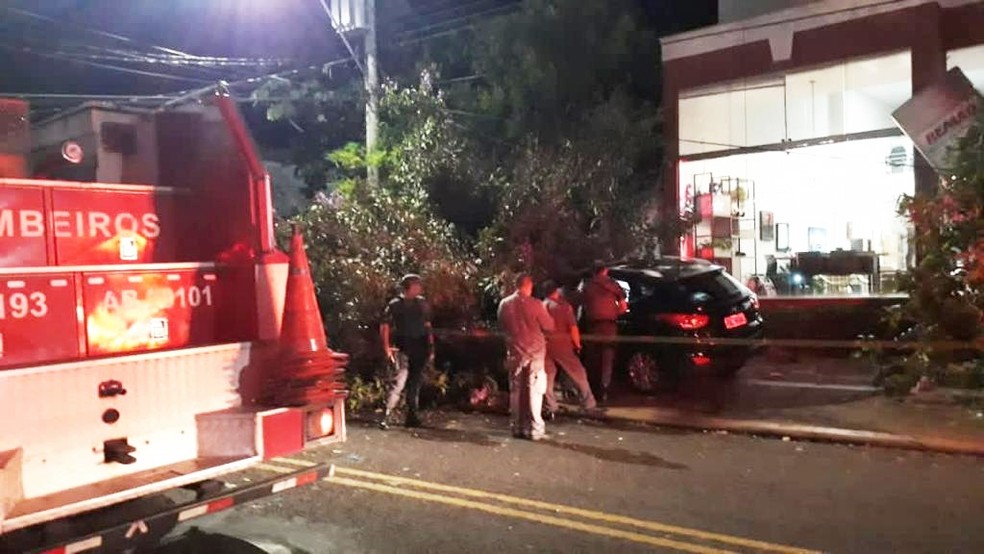 Carro atingiu motos e árvore depois que motorista foi baleado em Araçatuba - Foto: Regional Press