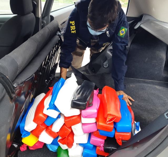 De acordo com a PRF, a droga estava escondida no tanque de combustível do veículo.