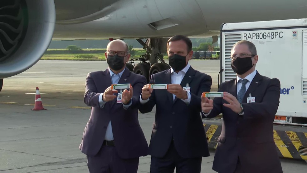 Governador de SP acompanha chegada de lote da vacina CoronaVac - Foto: Reprodução/TV Globo