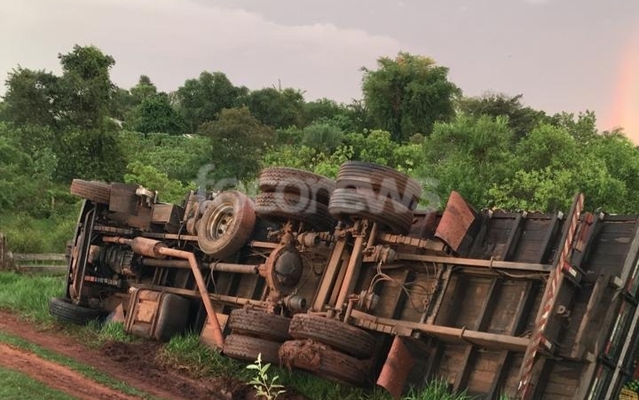 Caminhão tombou na Estrada do Matão, zona rural de Jales - Foto: Reprodução/FocoNews