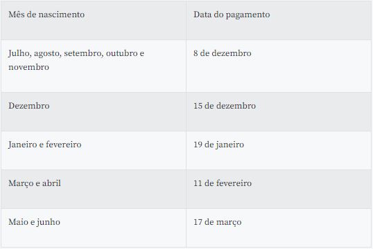 Nesta semana, só receberão o abono salarial os trabalhadores nascidos de julho a novembro. O pagamento para os demais meses de nascimento será escalonado até março do próximo ano. O calendário de benefícios será executado da seguinte forma: